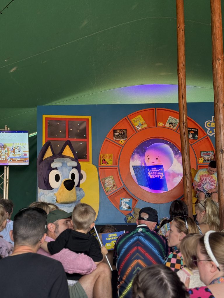 The CBeebies tent had lots going on throughout the weekend. All free/included in the cost of your ticket. You could meet your favourites such as Bluey and Dougie or have a story read to you by special guests throughout the day and into the evening. Arthur was starstruck meeting George and Nigel “from the TV”.